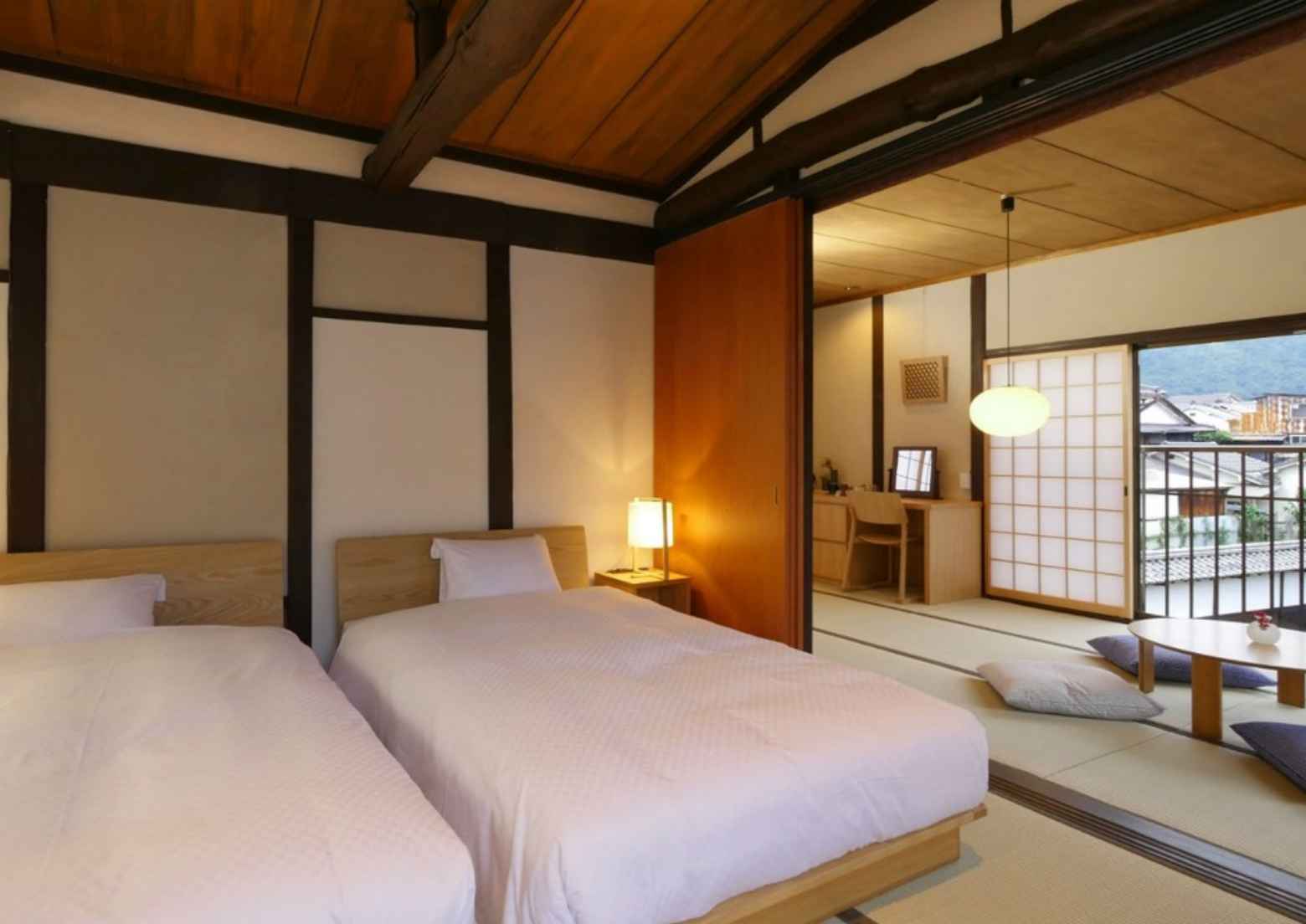 NIPPONIA HOTEL 竹原 製塩町は、フロント兼クラブラウンジの旧森川家住宅、ダイニングのHOTEI棟、宿泊のためのMOSO棟とKIKKO棟の4棟からなる分散型ホテルです。伝建地区を有する竹原のまちに住まっているかのような、特別な滞在をお楽しみいただけます。