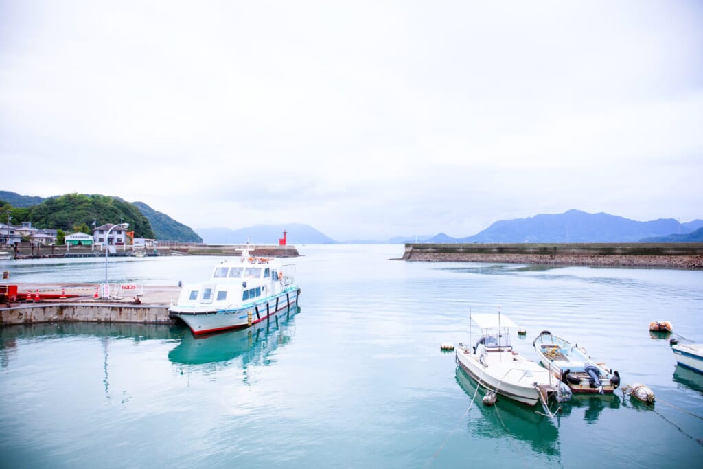 ・電車の場合:JR呉線「竹原駅」から「忠海駅」まで約11分。駅から港まで徒歩約7分。