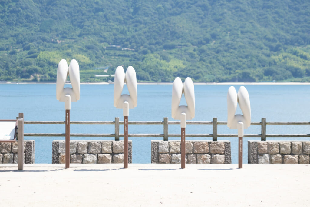 うさぎの耳の形をした集音器など、島内には遊び心あふれるオブジェも点在しています。
