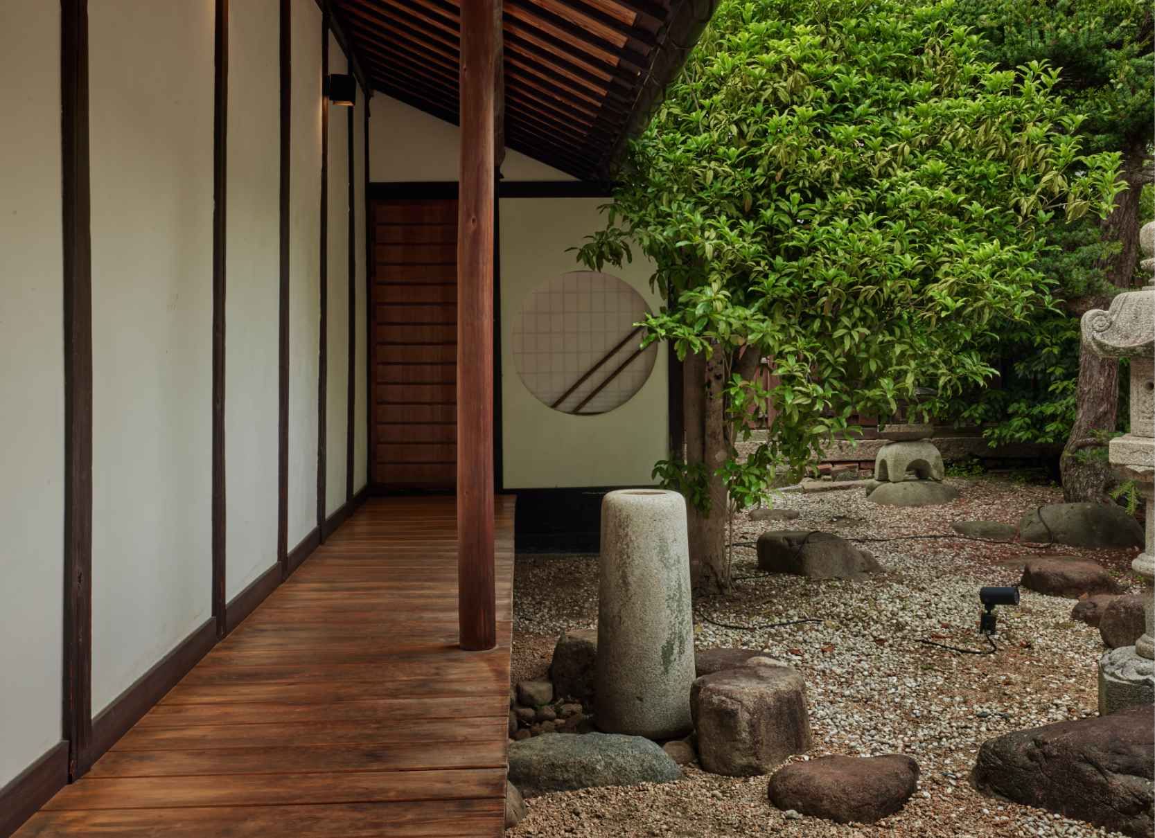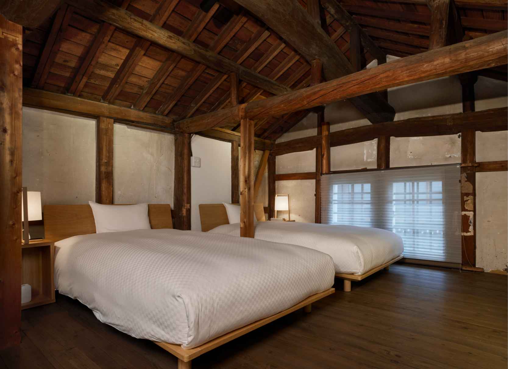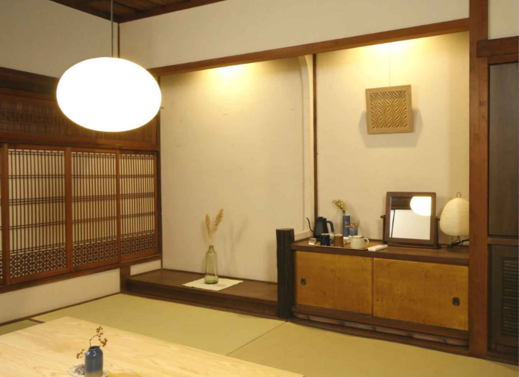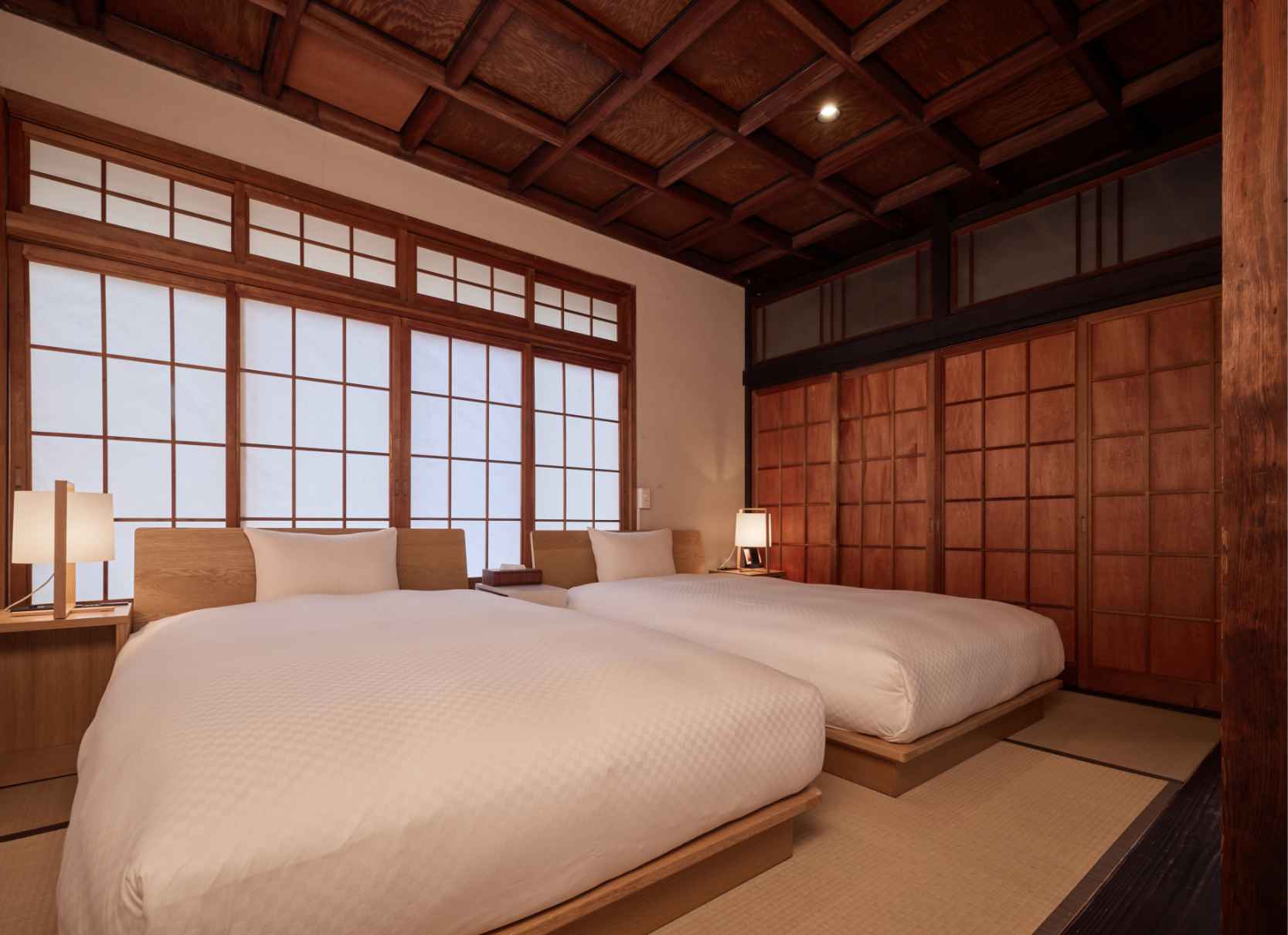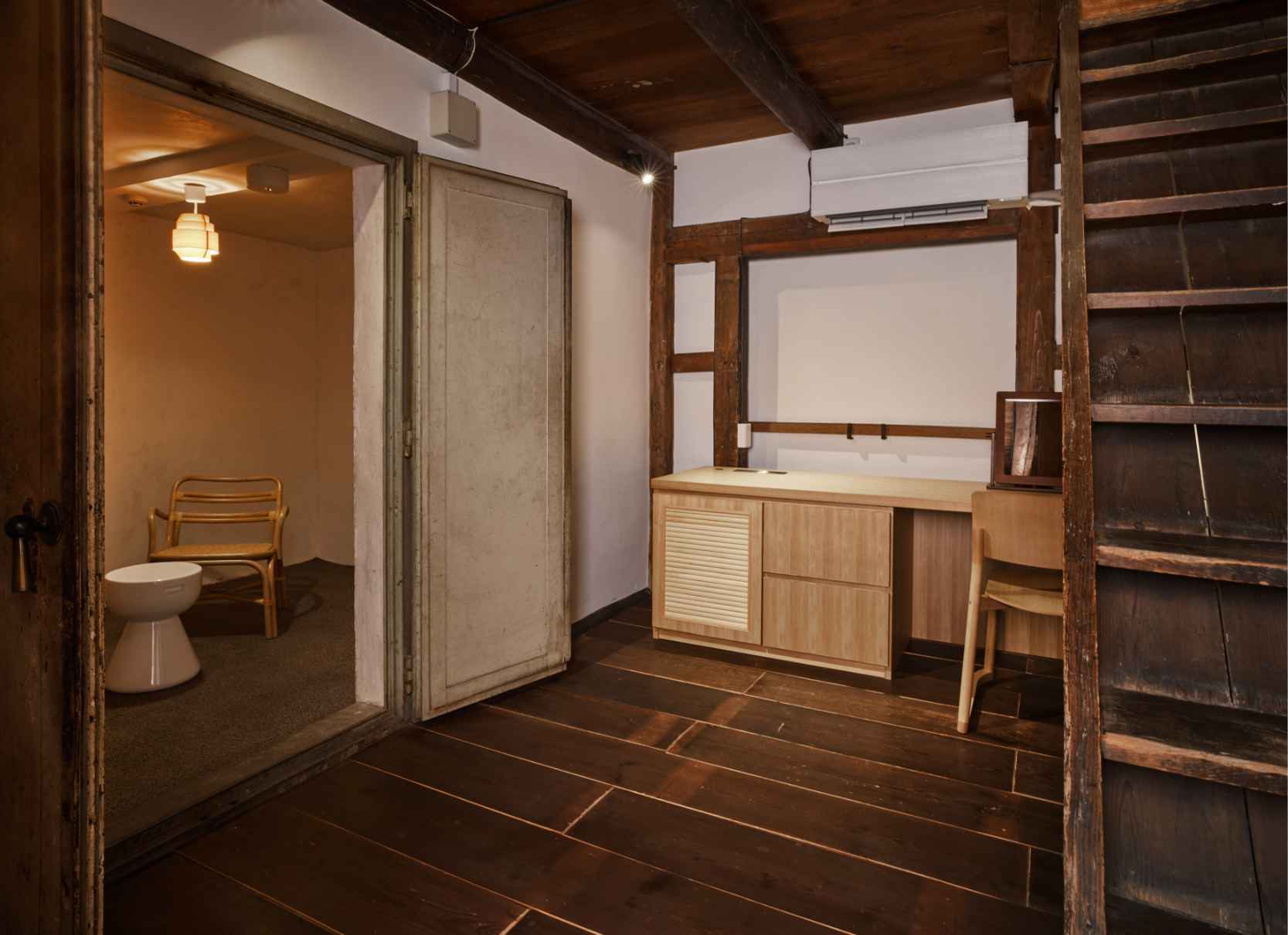 フロントの旧森川家住宅から徒歩2分の距離にあるMOSO棟。元蔵、元金庫、随所に残る当時の設えから建物のストーリーを感じられます。