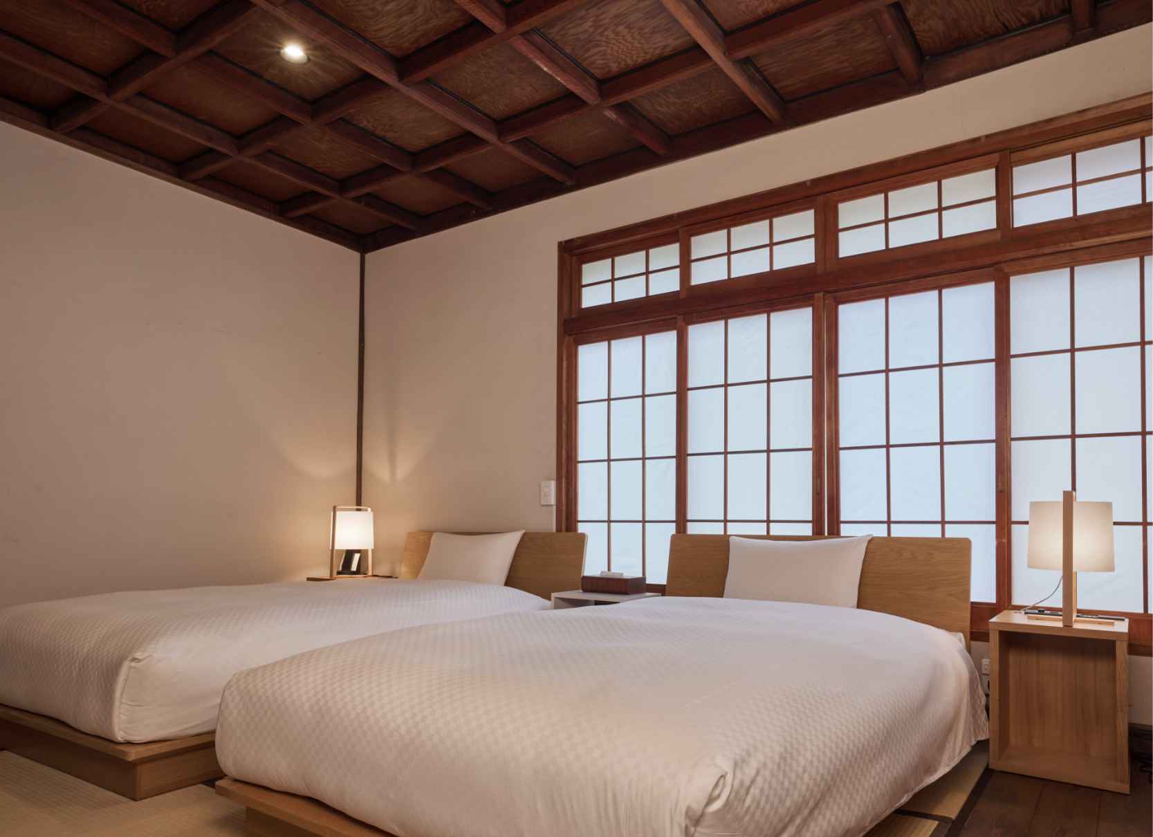 | 客室備品/アメニティ | サータ社製ベッド/バスルーム/高速インターネット回線(WiFi)/冷蔵庫/ミニバー/電気湯沸しポット/ヘアドライヤー/洗浄機能付きトイレ/金庫(一部客室を除く)/加湿器/タオル類/パジャマ/足袋/スリッパ/歯ブラシ/シャンプー/コンディショナー/ボディタオル/ボディソープ/石鹸/スキンケアセット/コットン/綿棒/ヘアブラシ/シャワーキャップ/髭剃り |