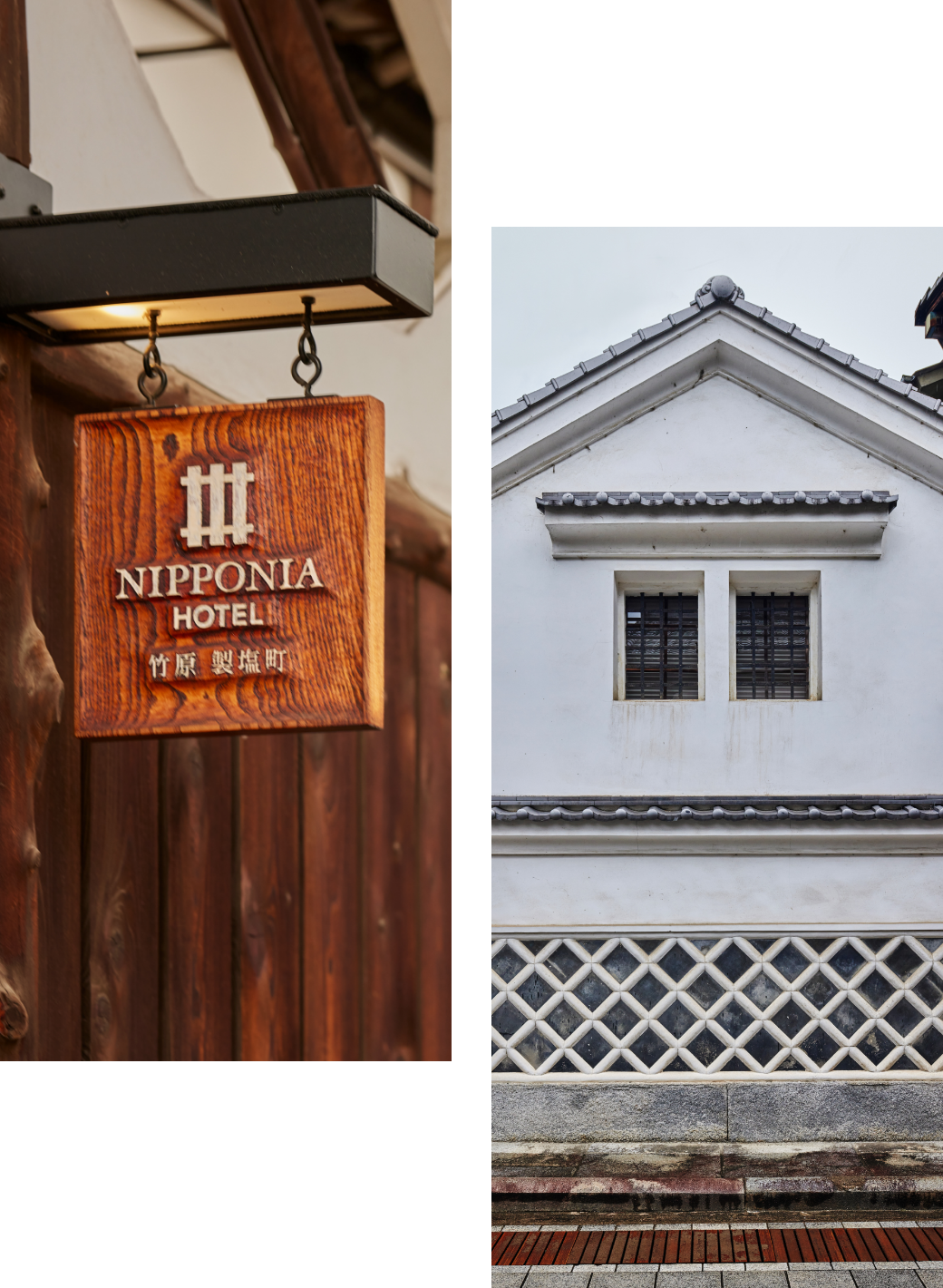 瀬戸内の港町として発展したこの地には、かつて竹原の繁栄を支えた店や宿が軒を連ね、今もその面影を色濃く残しています。