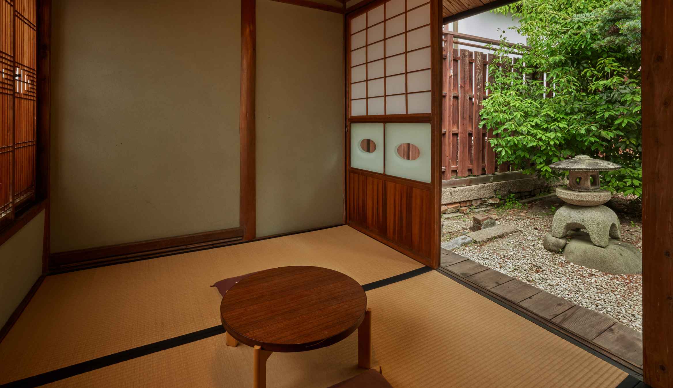 フロントの旧森川家住宅から徒歩2分の距離にあるMOSO棟。元蔵、元金庫、随所に残る当時の設えから建物のストーリーを感じられます。