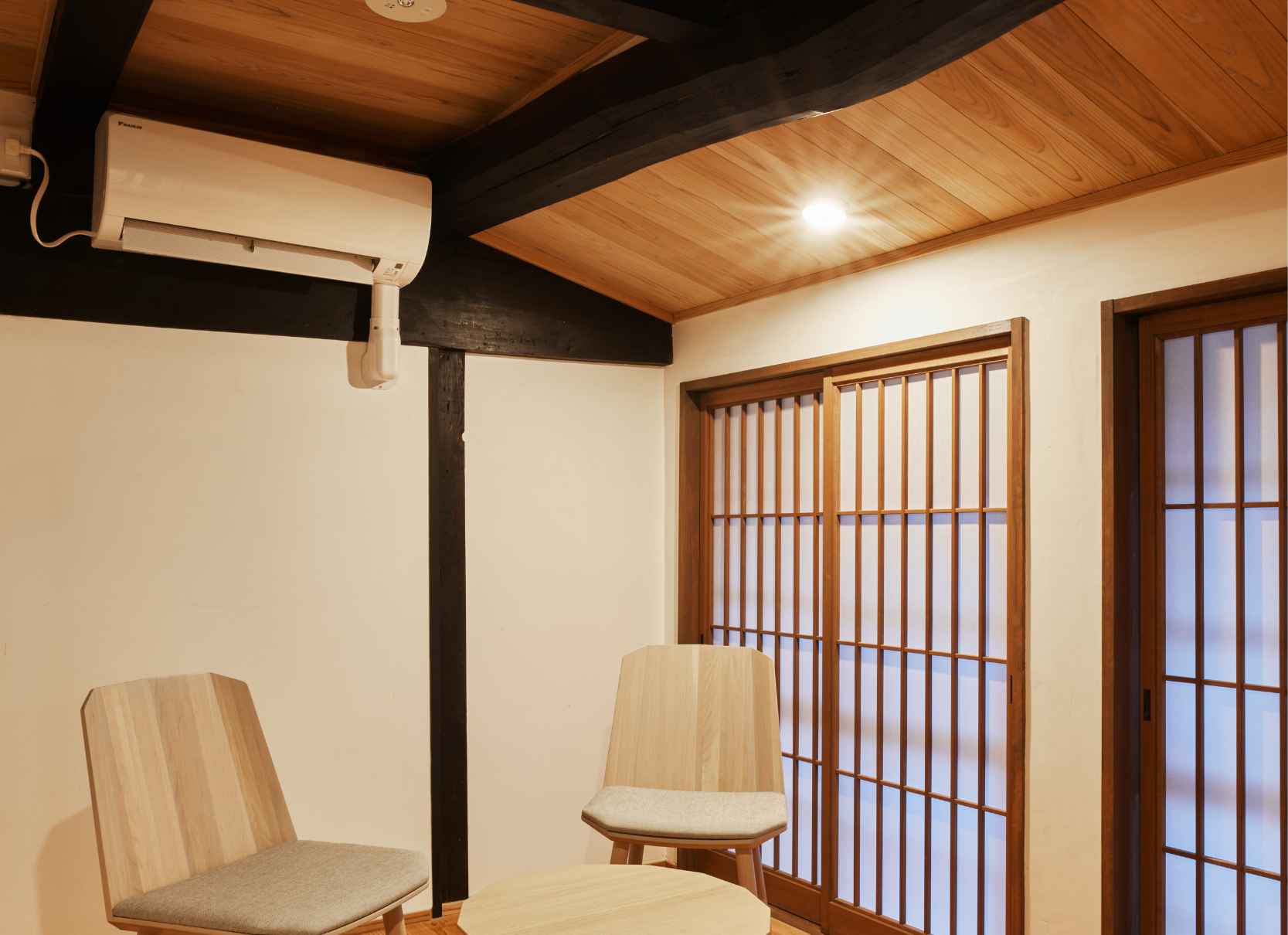 TVや時計、明々とした照明を置かないことで、日常の喧騒を離れたゆっくりしたひと時をお過ごしいただけます。また現代の快適性を加えつつ、できるだけ当時の空間を残しています。